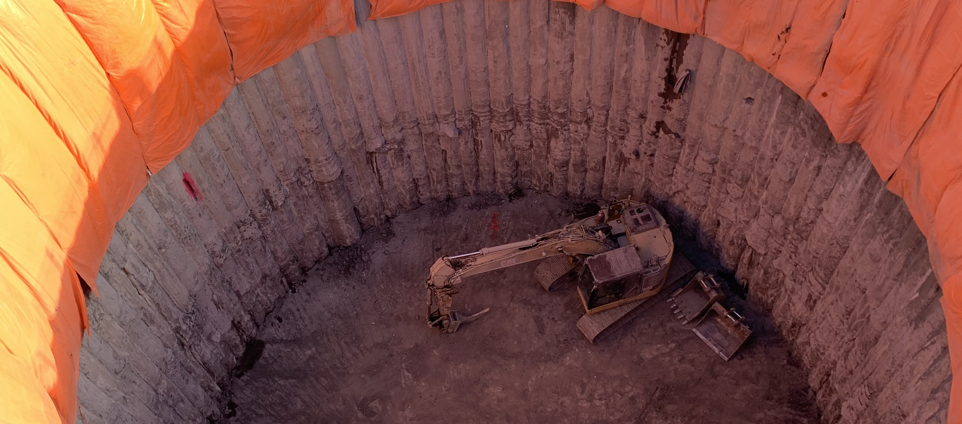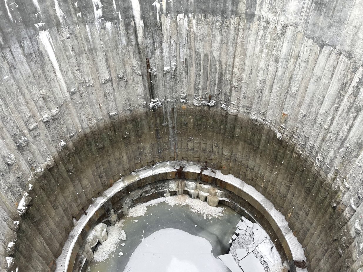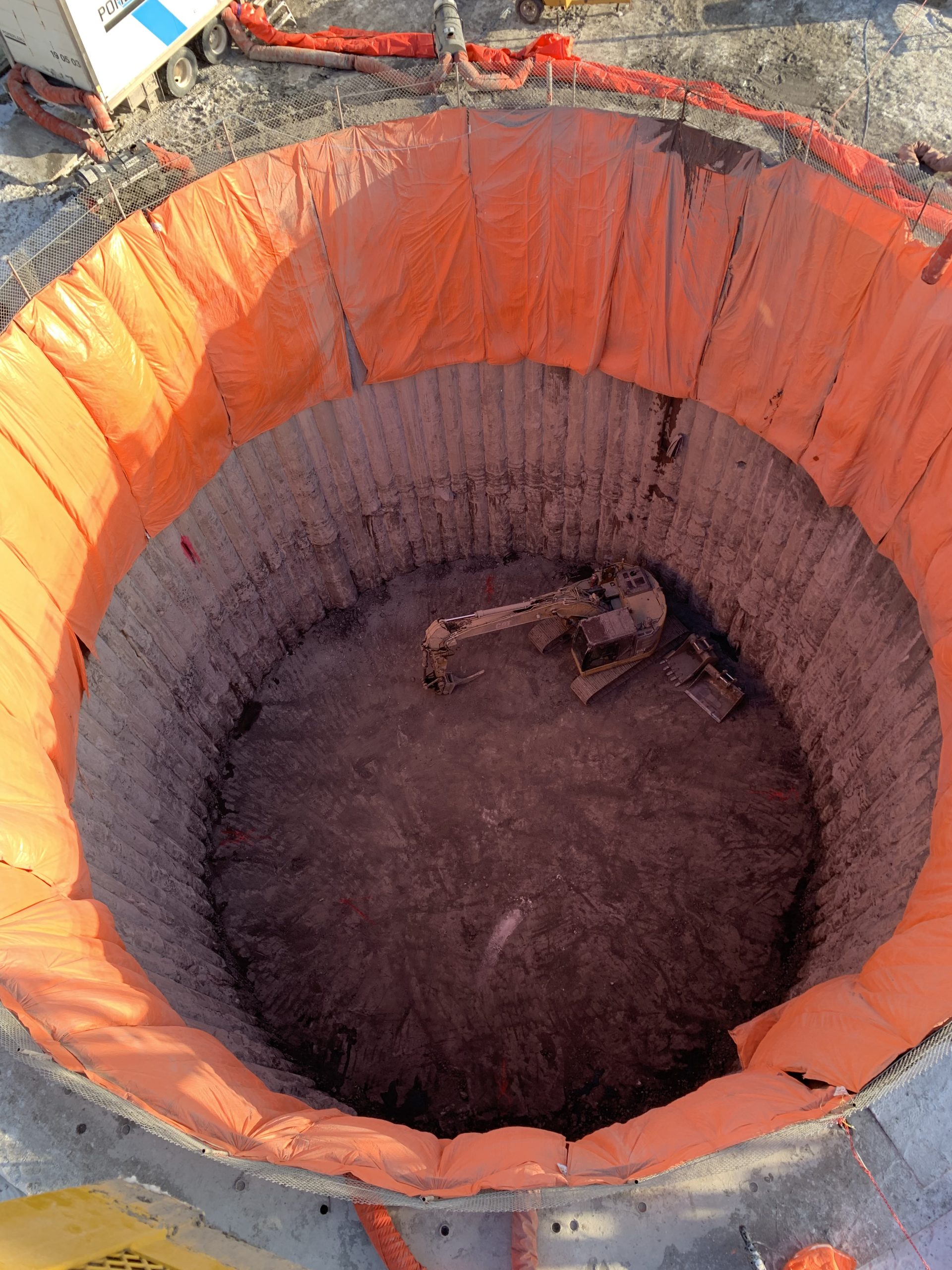 L’équipe a foré 100 pieux sécants de 1000 mm de diamètre, atteignant des profondeurs de 70 à 80 pieds, dont environ 20 pieds dans le roc. Le tout a été réalisé avec une tolérance rigoureuse de 1 % sur la verticalité et de 50 mm sur le positionnement, garantissant une exécution de très haute précision.