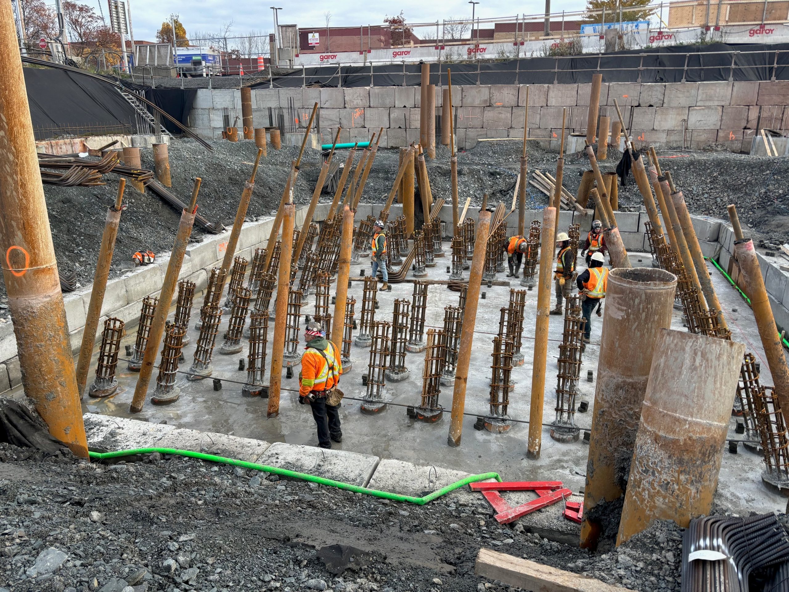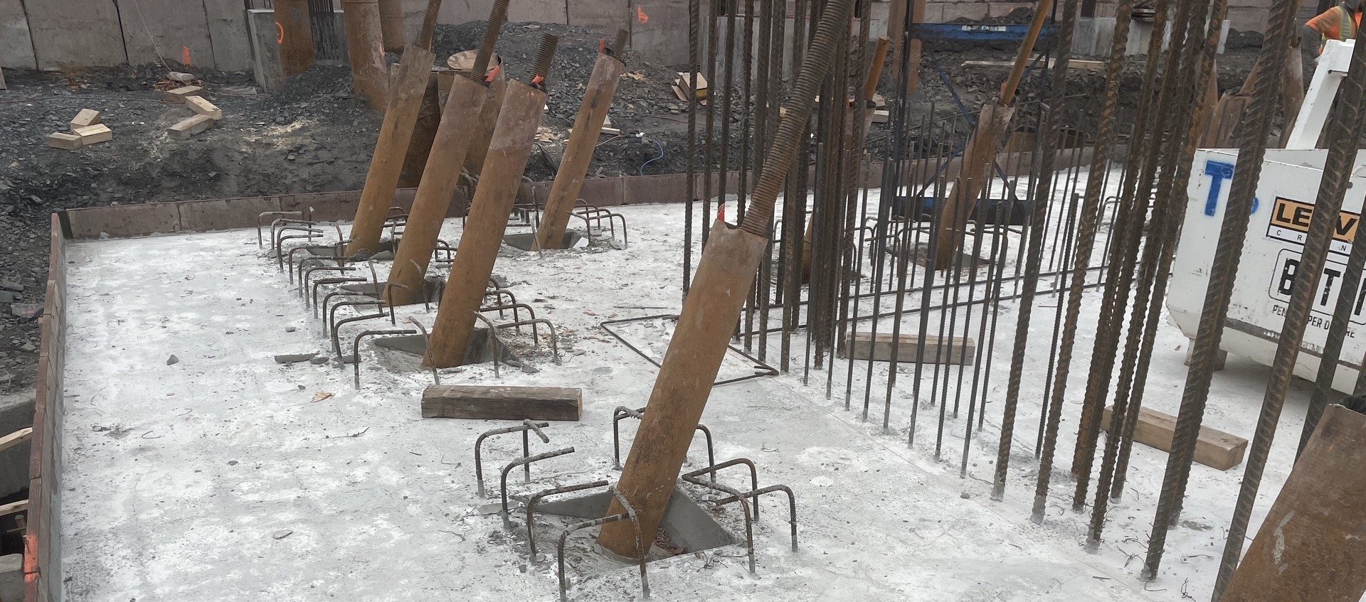 Afin de répondre aux exigences de ce projet d’envergure, nous avons procédé à l’installation de 554 pieux battus, dont les diamètres varient entre 9,625 po et 16 po. Ces pieux assurent une assise robuste et sécurisée en transférant les charges du bâtiment vers des couches de sol plus résistantes.