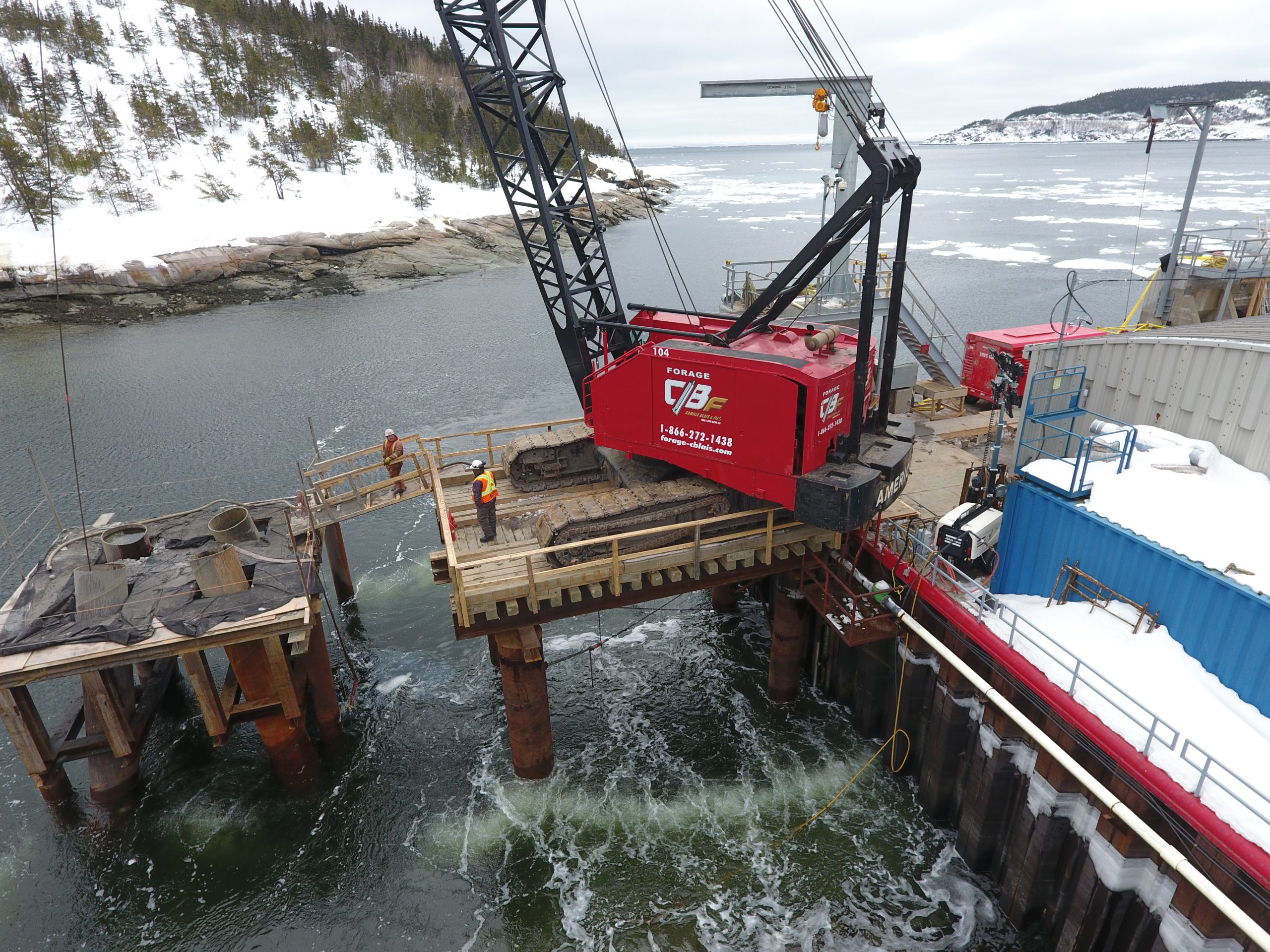 Dans le cadre de l’amélioration des infrastructures portuaires à Tadoussac, Forage CBF a été mandaté pour la construction d’un duc-d’Albe destiné à sécuriser l’accostage de deux nouveaux traversiers de plus grande capacité.